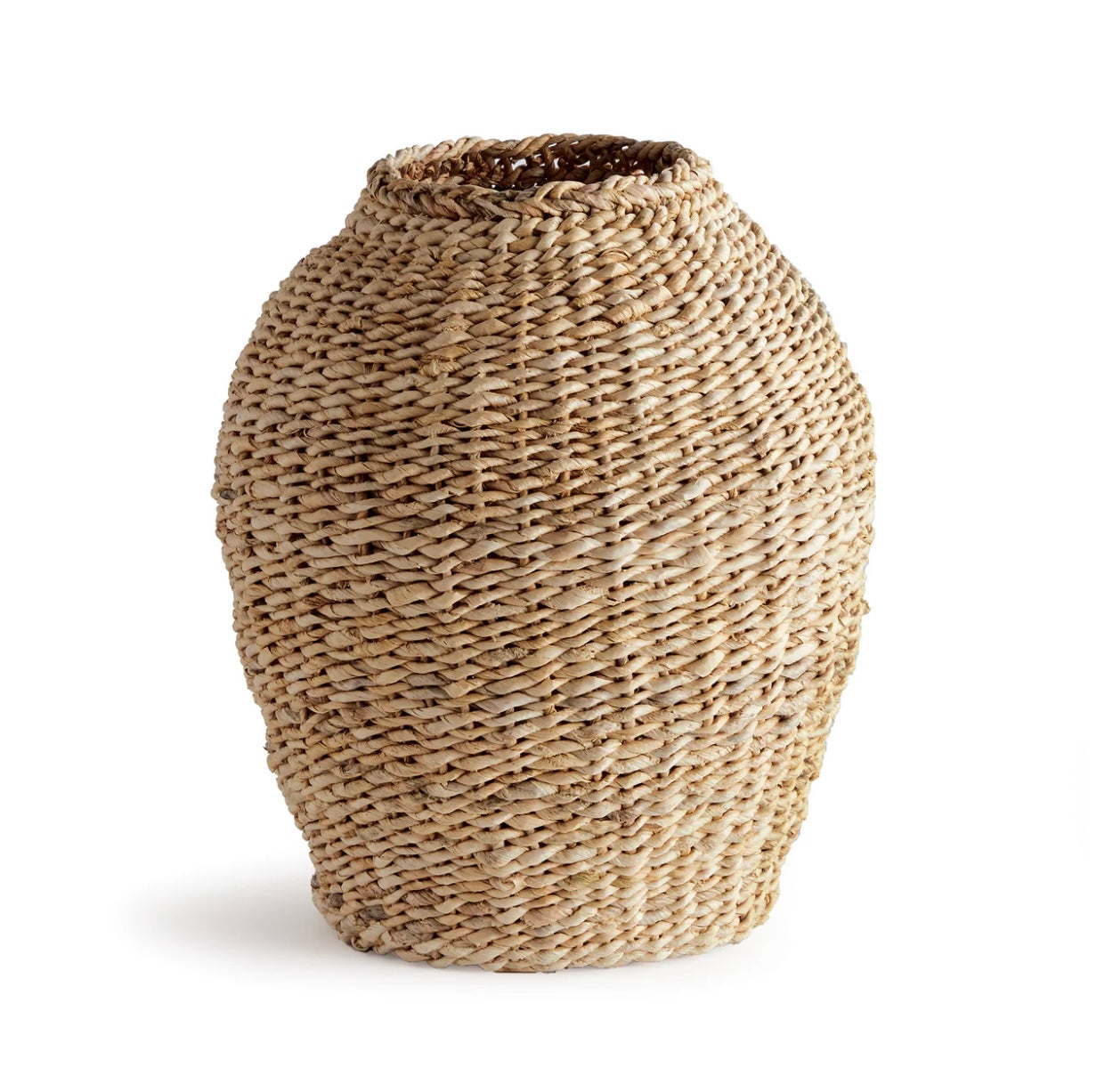 A natural leaf fiber, abaca is an upcycled, sustainable material. A very durable fiber, this natural basket is made with an iron frame to keep its shape. Add some faux stems or display as is for a simplified look