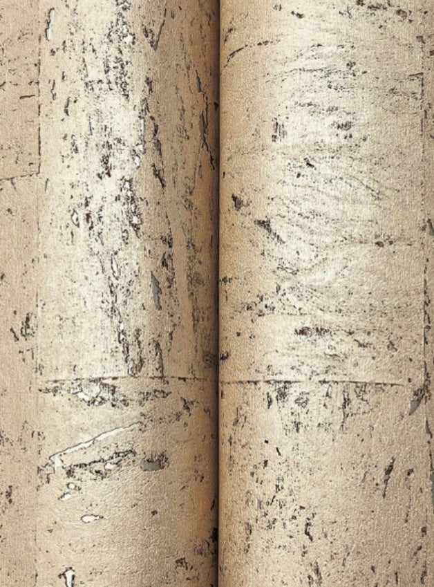 The famous cork oak forests of Europe and Africa provide the finest sustainable Caldera Cork for glamorous wall installations. Seen here in rich cream accented by gold metallics. This Caldera Cork Wallpaper measures approximately 36 inches wide by 24 feet long, measuring approximately 72 square feet per roll. A source guide, streamlined by the framework of color, provides a designer approach to distinctive specialties, naturals, grasses, woods, and luxury textiles. The affluent curation of exclusive designs highlights the best in handcrafting with organic materials.