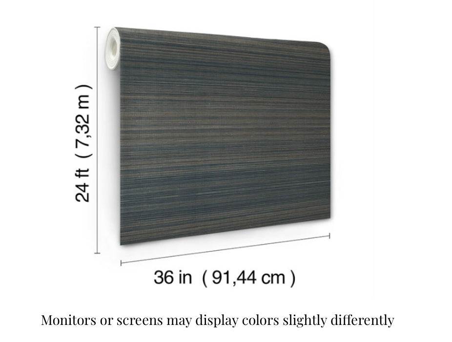 Multicolor twists and the unmistakable sheen of abaca fibers elevate horizontal stripes to the sophistication of fine menswear suiting in pattern Tailored Abaca. Featuring a monotone ombre of blue, navy and silver metallic hues. This Tailored Abaca Wallpaper measures approximately 36 inches wide by 24 feet long, measuring approximately 72 square feet per roll. A source guide, streamlined by the framework of color, provides a designer approach to distinctive specialties, naturals, grasses, woods, and luxury textiles. The affluent curation of exclusive designs highlights the best in handcrafting with organic materials.