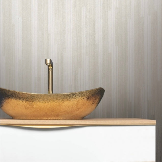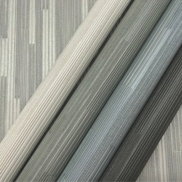 Thick and thin, deeply striated vertical lines and wide bars alternate and step out with mechanical precision in the stripe pattern Newel, shown in natural white. This Newel Wallpaper measures approximately 26 inches wide by 30 feet long, measuring approximately 65 square feet per roll. Designed for function, industrial manufacturing’s unmistakable elements evolve to become the distinctive characteristics of a new philosophy of informal, modern sophistication of style.
