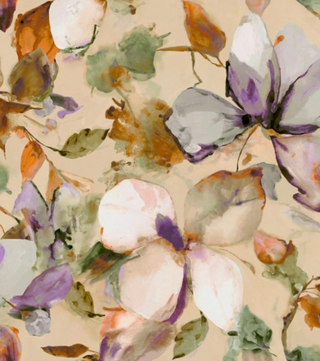 Grace your walls with the airy, feminine charms of this mural featuring large-scale, watercolor flowers with loose petals drifting downwards. Featured here in a palette of purple, pink, green, orange, teal, and cream against beige. Florian Lavender Wall Mural comes on 5 panels that each measure 20.9-in by 117.6-in and 8.69-ft wide by 9.8-ft tall when assembled.
