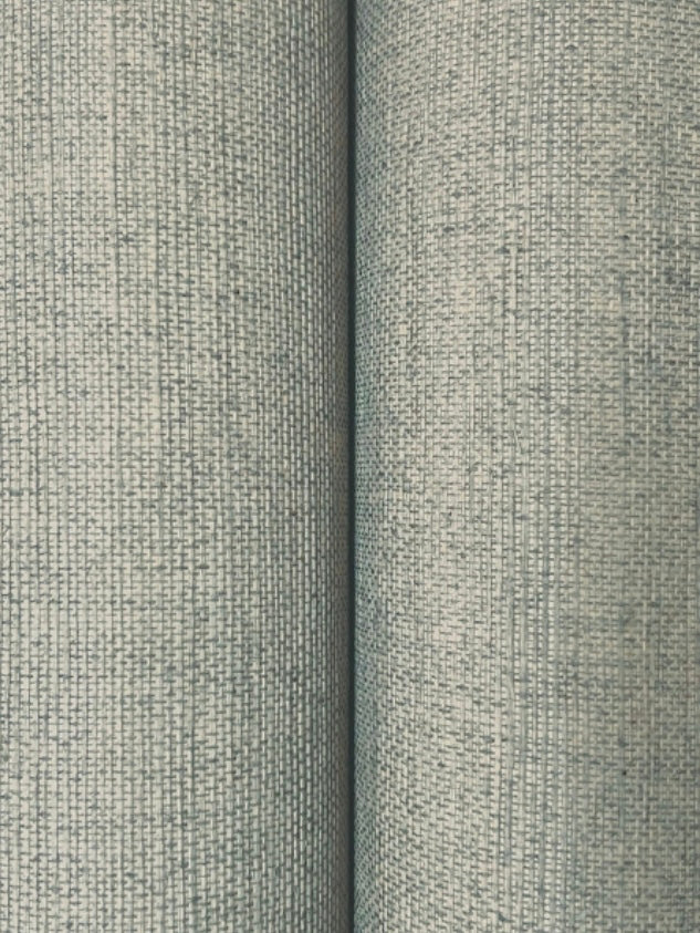 Thin strands of sisal are loomed in a loose yet uniform basketweave in pattern Aurora Sisal. Featured here in a steely blue-gray and beige. This Aurora Sisal Wallpaper measures approximately 36 inches wide by 24 feet long, measuring approximately 72 square feet per roll. A source guide, streamlined by the framework of color, provides a designer approach to distinctive specialties, naturals, grasses, woods, and luxury textiles. The affluent curation of exclusive designs highlights the best in handcrafting with organic materials.