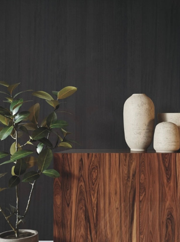 Wood Veneer’s granular, vertical lines create a depth of field that provides a modern reimagination of paneled walls. Featured here in lead gray. This Wood Veneer Wallpaper measures approximately 36 inches wide by 24 feet long, measuring approximately 72 square feet per roll. A source guide, streamlined by the framework of color, provides a designer approach to distinctive specialties, naturals, grasses, woods, and luxury textiles. The affluent curation of exclusive designs highlights the best in handcrafting with organic materials.