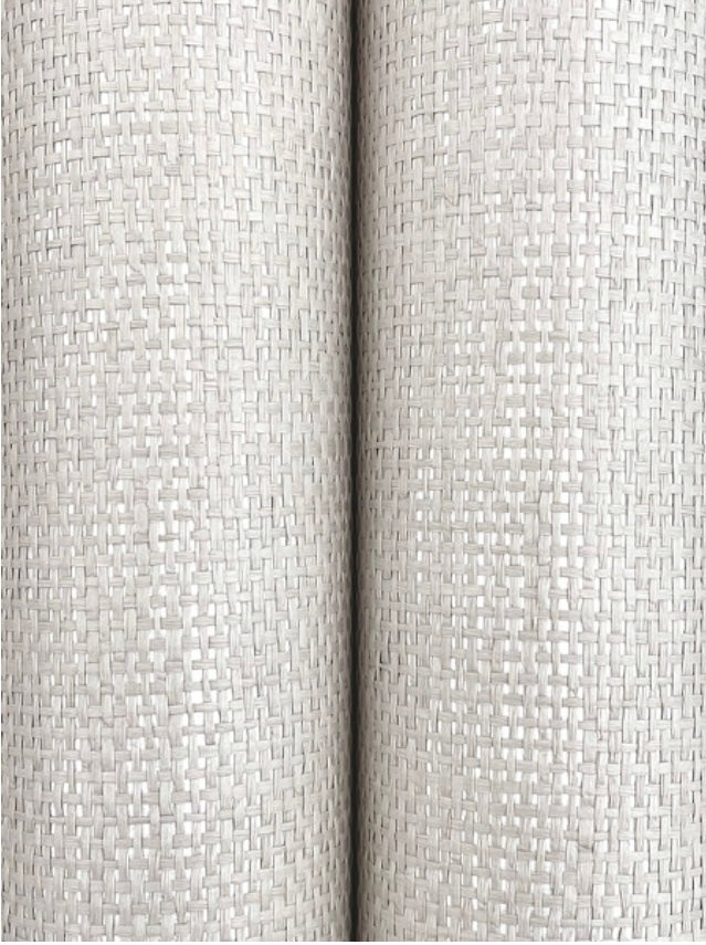 The flat, open fibers of Airy Paperweave showcase a ground of burnished metallic. Featured here in cream and silvery gray. This Airy Paperweave Wallpaper measures approximately 36 inches wide by 24 feet long, measuring approximately 72 square feet per roll. A source guide, streamlined by the framework of color, provides a designer approach to distinctive specialties, naturals, grasses, woods, and luxury textiles. The affluent curation of exclusive designs highlights the best in handcrafting with organic materials.
