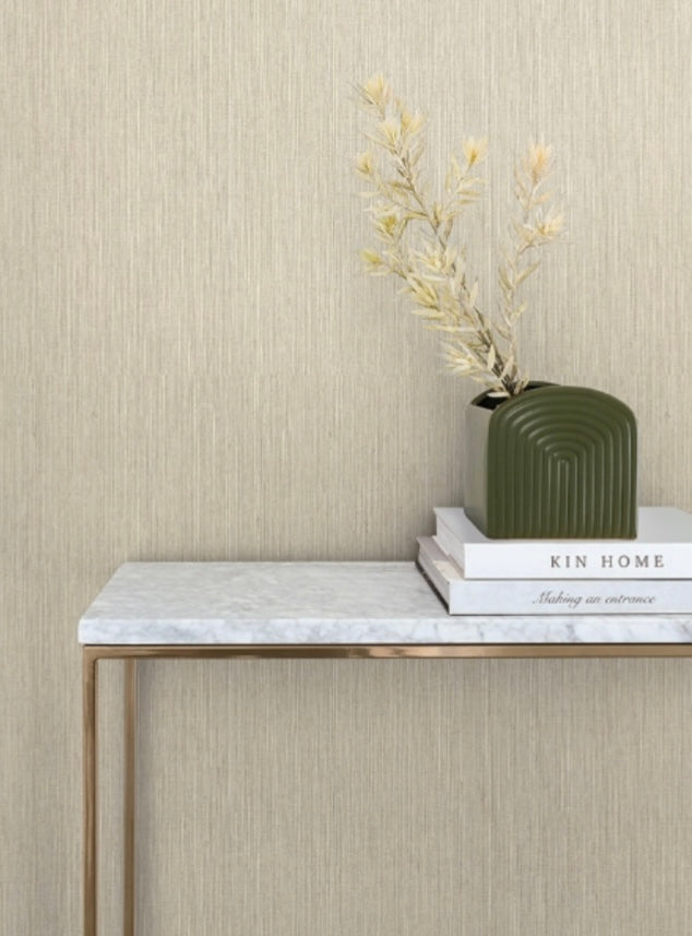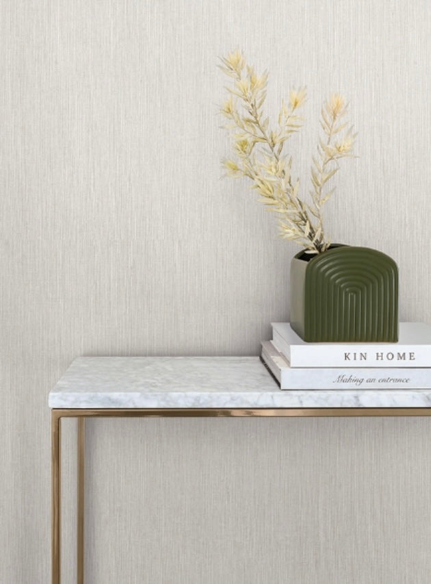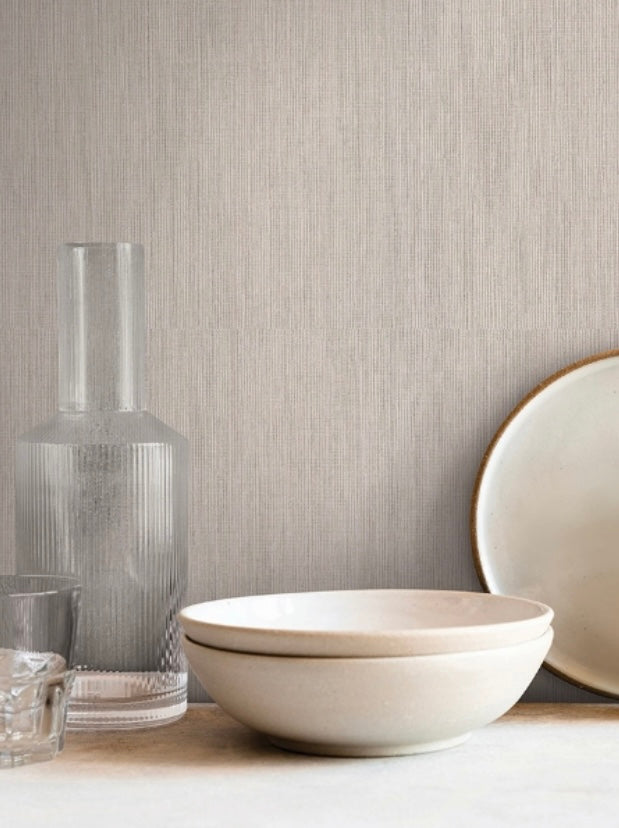 Lilah is a contemporary hybrid between classic wovens and faux grass that elevates with its quiet sophistication. Lilah is an unpasted, vinyl on non woven wallpaper measuring 20.86 inches wide by 33 feet long, covering approximately 57.37 square feet per roll.