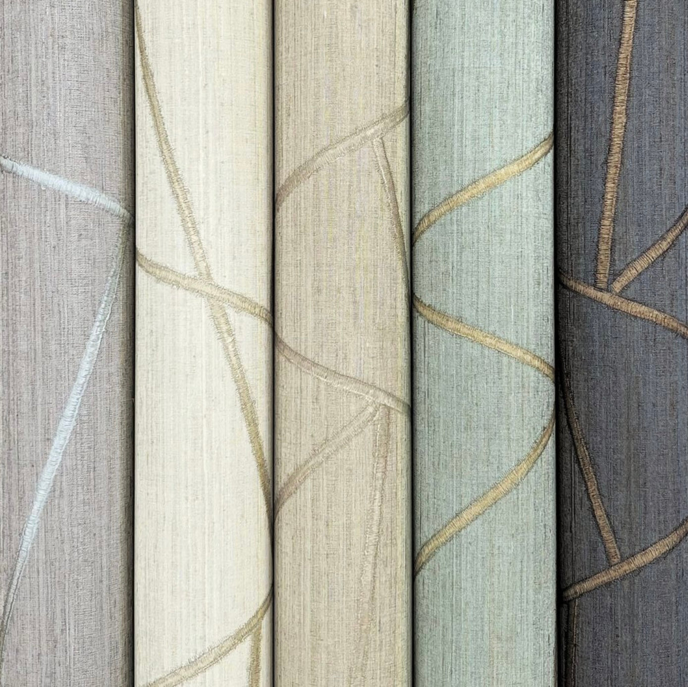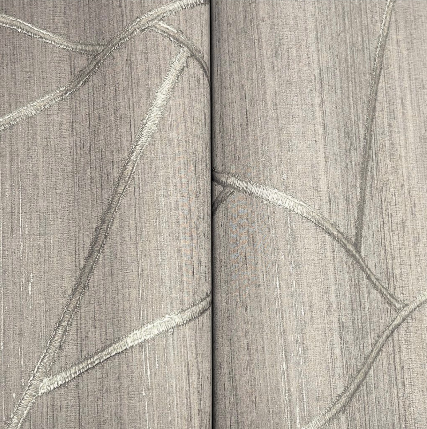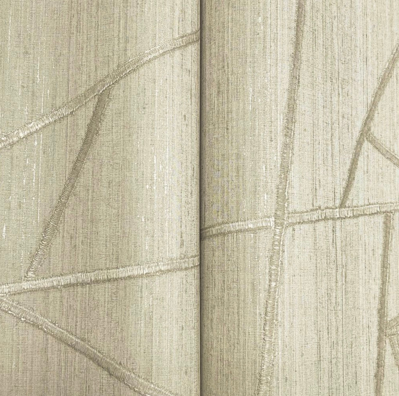 Broad linear stitches of faux metallic threads build Lisle's contemporary pattern of triangles and shapes against a rustic backdrop with touches of shimmer, Lisle is an unpasted, vinyl on non woven wallpaper measuring 39.37 inches wide by 33 feet long, covering approximately 108.27 square feet per roll.