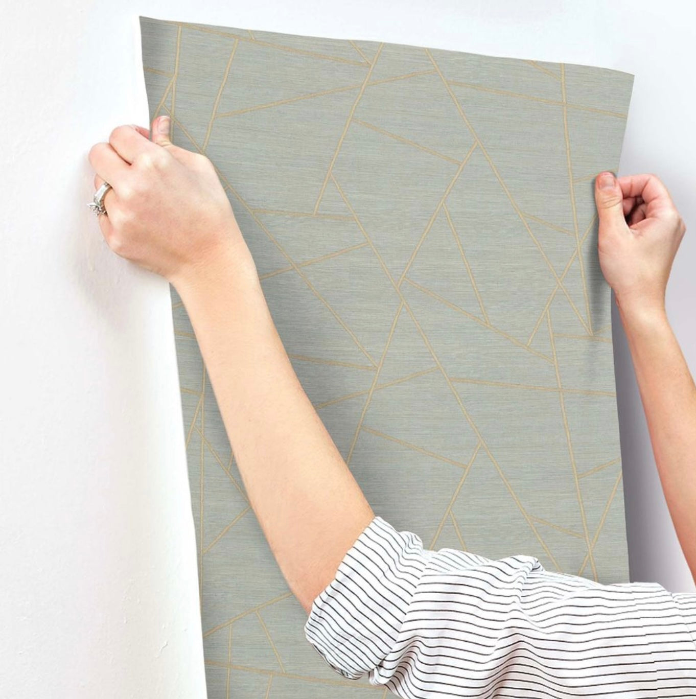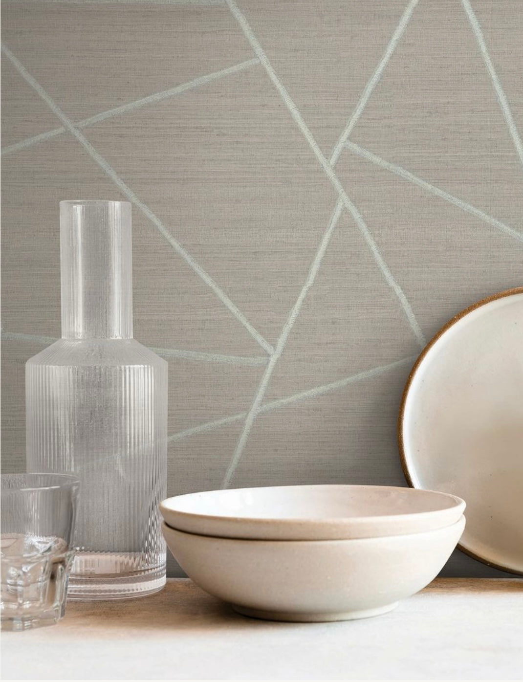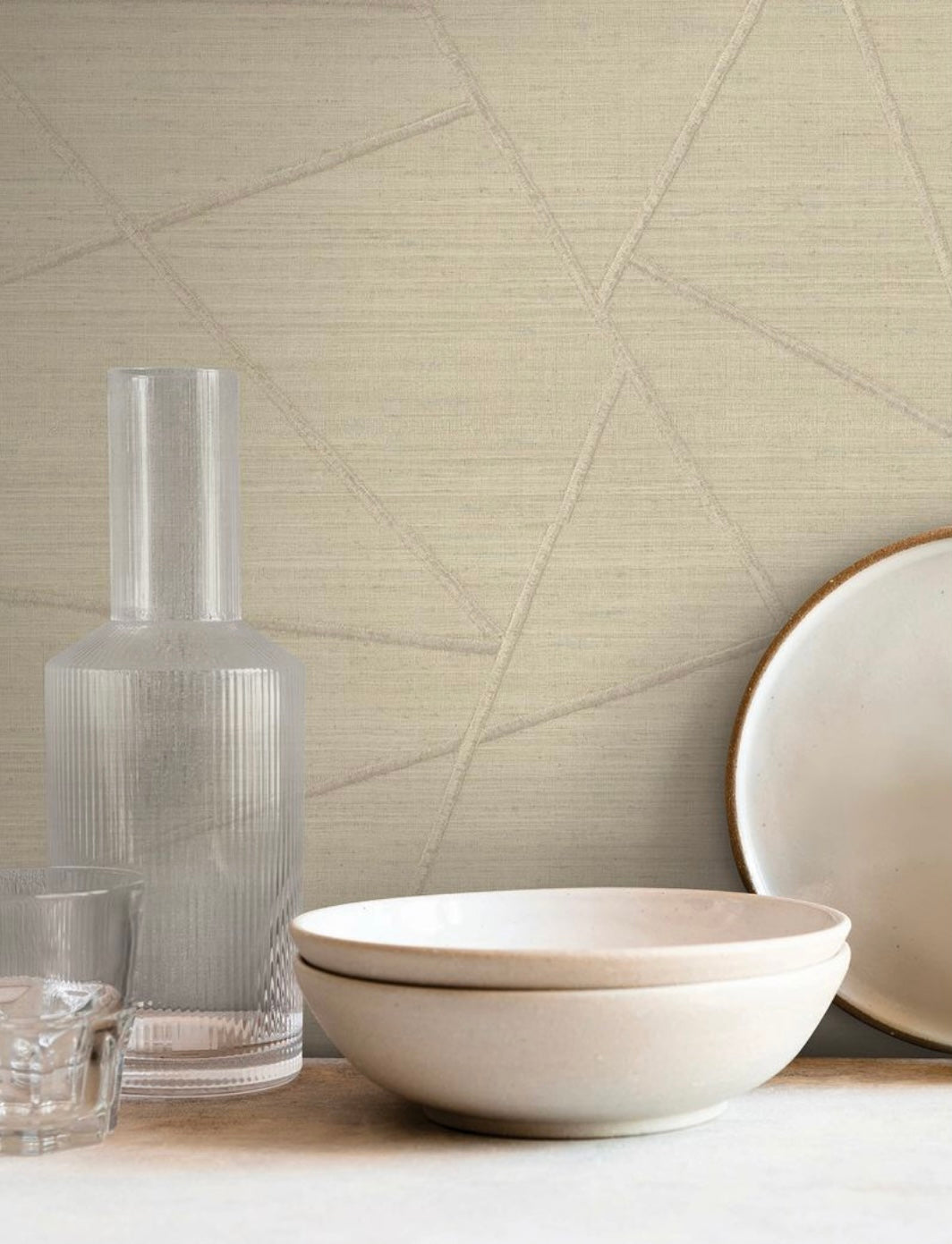 Broad linear stitches of faux metallic threads build Lisle's contemporary pattern of triangles and shapes against a rustic backdrop with touches of shimmer, Lisle is an unpasted, vinyl on non woven wallpaper measuring 39.37 inches wide by 33 feet long, covering approximately 108.27 square feet per roll.