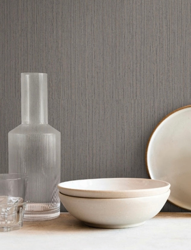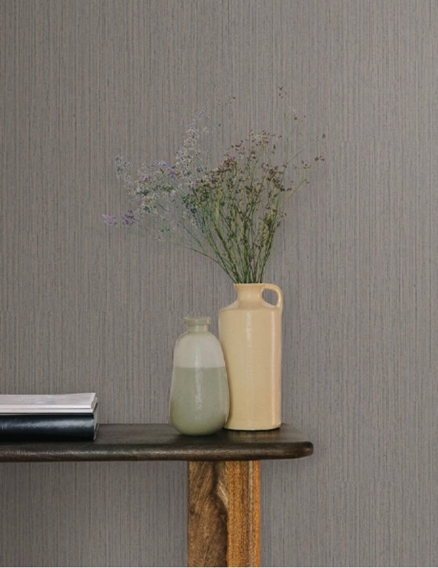 Like its namesake, Shetland creates a sense of the archipelago's rustic, wild beauty, woven into a vertical texture with a sense of abandon. Featured here in mushroom brown and in slate Gray. Shetland is an unpasted, vinyl on non woven wallpaper measuring 20.86 inches wide by 33 feet long, covering approximately 57.37 square feet per roll.